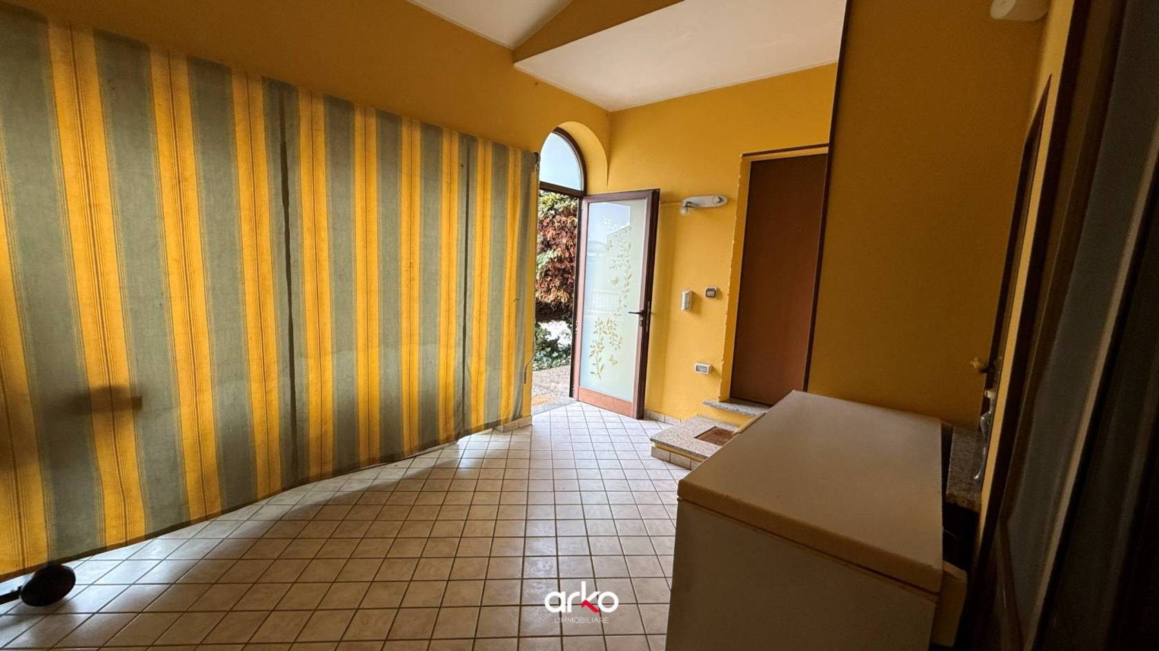 Il box auto finestrato è attualmente utilizzato come taverna; lo spazio antistante al box è stato chiuso e trasformato in veranda, creando un ambiente aggiuntivo estremamente sfruttabile.